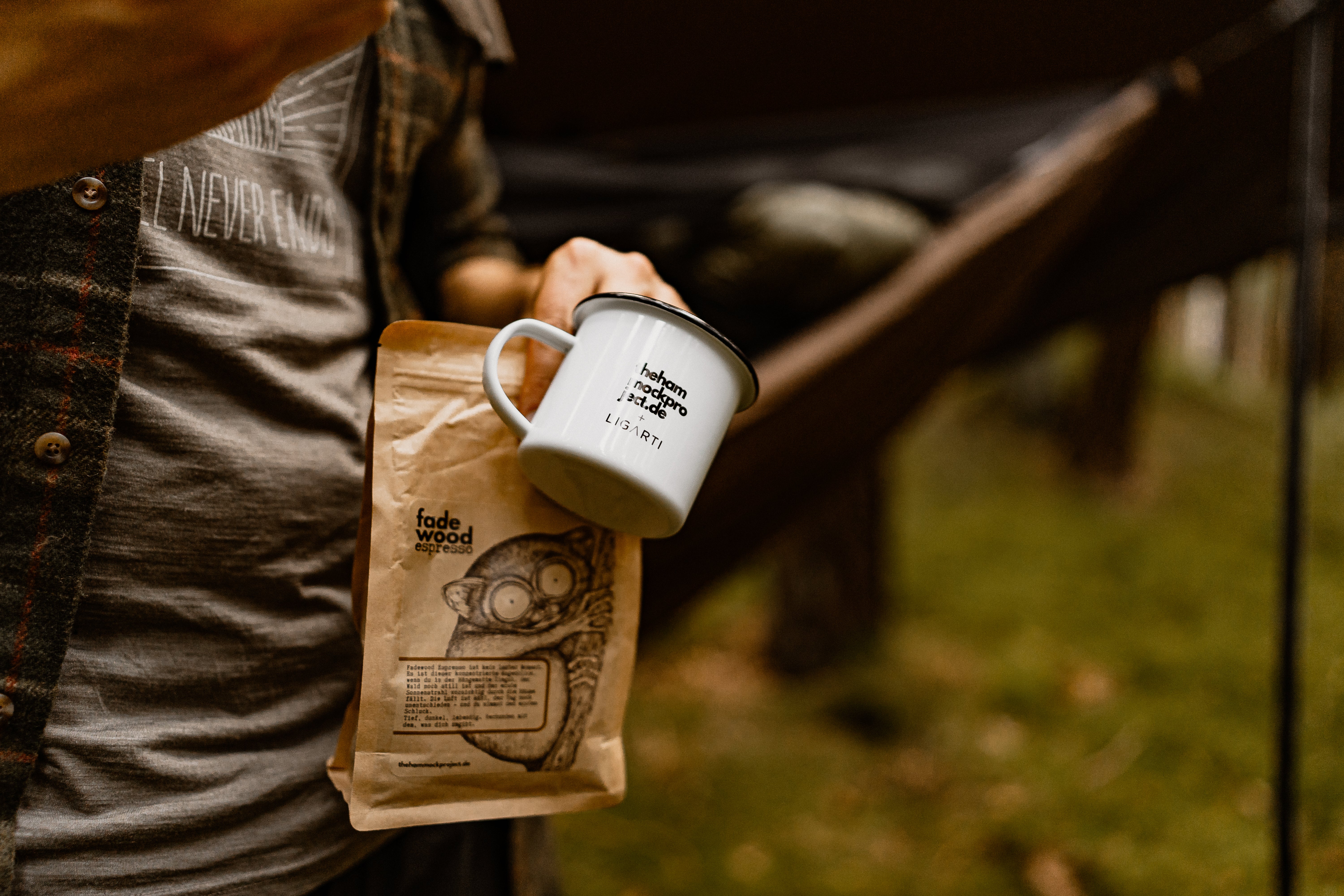 Seit meinen ersten Nächten in der Hängematte – lange bevor es thehammockproject.de überhaupt gab – begleitet mich die Emailletasse von Ligarti mit dem Koboldmaki, wenn ich draußen unterwegs bin. Als die Idee reifte, einen eigenen Becher ins Sortiment zu nehmen, lag es nahe, mir diese Marke noch einmal genauer anzuschauen. Dabei habe ich festgestellt, dass Ligarti quasi direkt um die Ecke sitzt. Schnell war klar: Das wird eine lokale Kooperation. Und genau das haben wir jetzt mit dieser Tasse für euch umgesetzt.